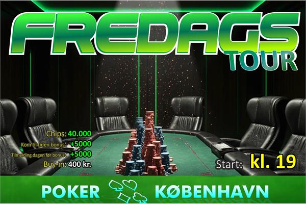 Vi spiller 9 spillere pr. bord på 5 borde (50 max. spillere) med levels på 25 minutter - Fra level 9 bliver level på 20 min.